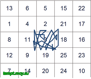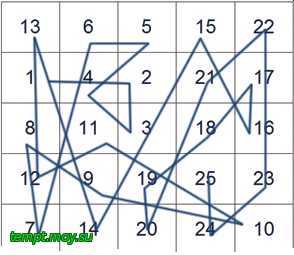 Перед вами таблица из определенного количества клеток, в которых в произвольном порядке расположены цифры от 1 до 25.